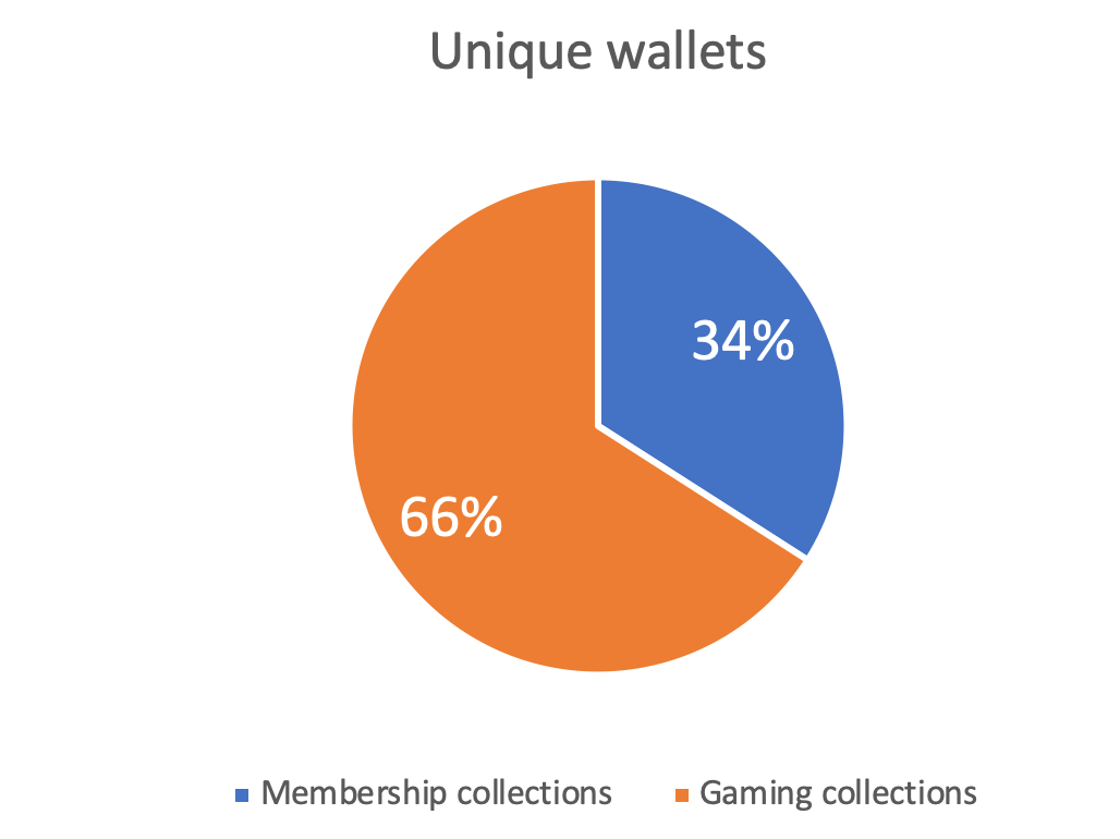 In terms of unique wallets, we saw a decrease of about 0.35%, which is about 163 wallets across all collections. Right now, there are a total of 45,752 unique wallets, and 15,584 of them are in BAYC, MAYC, and BACK (membership collections).