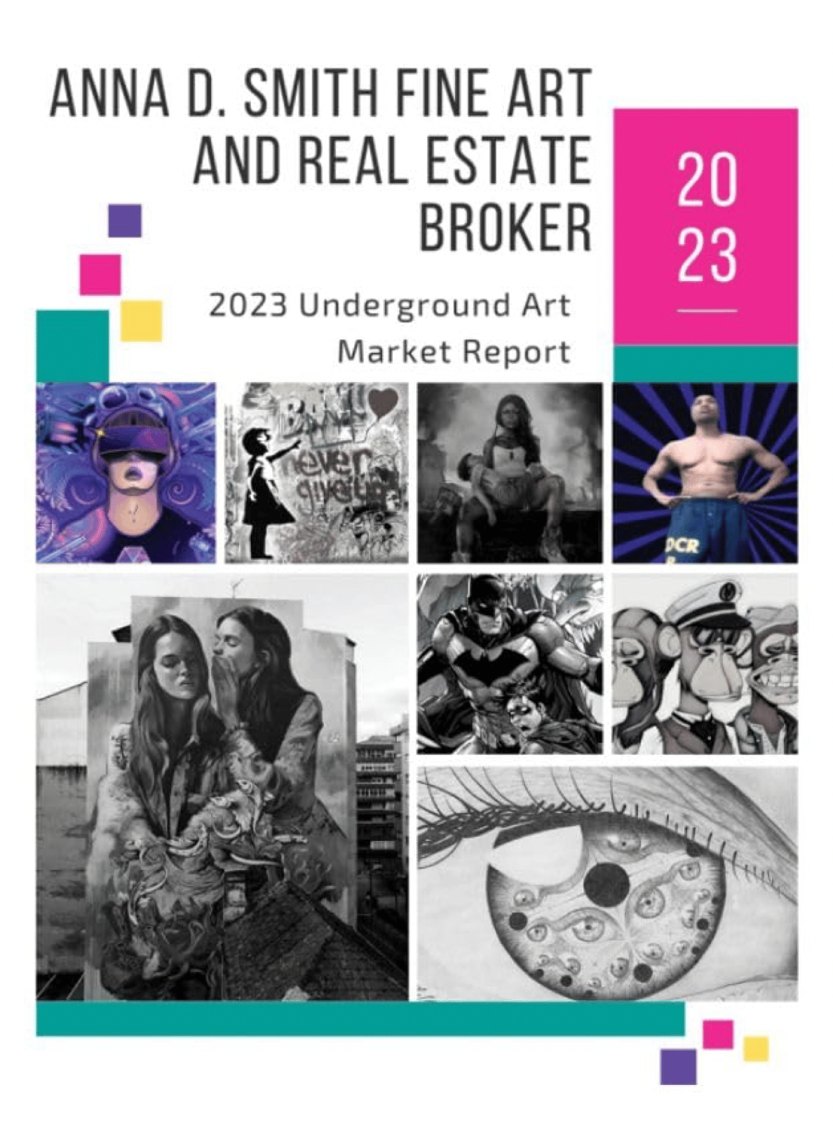The '2023 Underground Art Market Report' isn't your typical scientific or official art assessment. It's the brainchild of Anna D. Smith, a Fine Art and Real Estate Broker, and it offers a unique perspective on a niche art culture known as Underground Art. Drawing heavily from internet resources, particularly Pinterest statistics, Anna crafts an intriguing glimpse into this artistic subculture.
